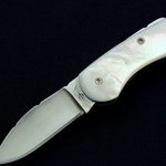 This extended tang knife features a Drop Point blade that is hollow ground from 154CM S/S. The blade and spine are fileworked with titanium liners that add colored filework. The handle slabs are Mother Of Pearl. The blade measures 2 x 3/4 x 1/8 with and overall length of 5 3/8.