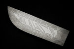 Center Cross mirror image mosaic with Meteorite stripes to the sides and twist damascus surrounding the picture billet in center. 5 1/4 x 1 1/2 x .195