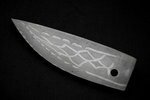 4 billet striped cable Damascus feather pattern. Knickname: Bi-Polar Blade. 5 1/2 x 7/8 x .189